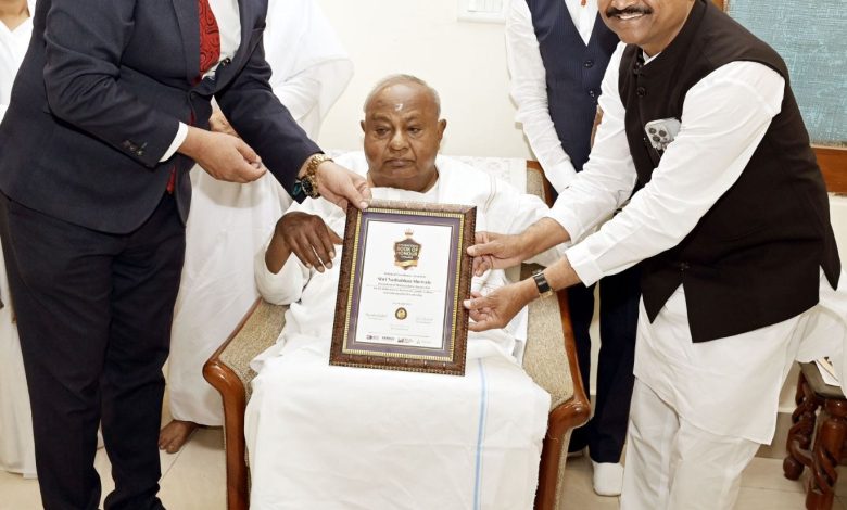 * एच. डी. देवेगौडा यांच्या उपस्थितीत नाथाभाऊ शेवाळे यांना ‘सर्टिफिकेट ऑफ एक्सलन्स’ प्रदान.