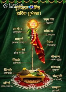 गुढी ही विजयाची पताका असून तिचे घटक जीवनाचे सार सांगतात: